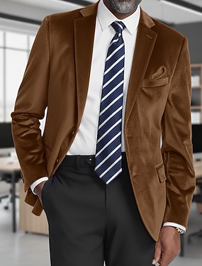 Per uomo Blazer di velluto Collare di chiusura Vintage Moda Casual Tinta unita Blazer Marrone Vestibilità su misura Monopetto Due Bottoni
