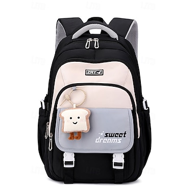 Zaino impermeabile di grande capacità per ragazzi con simpatico ciondolo a forma di toast - elegante borsa da viaggio e da scuola per ragazzi con cinghie per bagagli e tasca per tablet