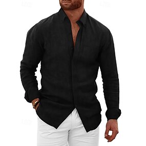 Per uomo Camicia Camicia di lino Camicia popover Camicia Estiva Abbigliamento da spiaggia Tinta unica Casuale Quotidiano Nero Bianco Blu marino Azzurro cielo Manica Lunga Collo ripiegato Estate