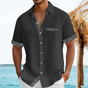 Per uomo Camicia camicia di lino Camicia estiva Abbigliamento mare Maglietta informale Camicia con bottoni Color Block Da mare Curise Nero Bianco Rosa Blu marino Manica corta Bavero Estate