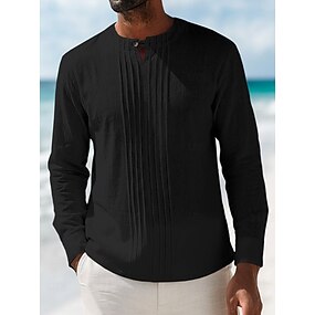 Per uomo Camicia Camicia Guayabera camicia di lino Camicia con bottoni Camicia estiva Camicia da spiaggia Nero Bianco Blu marino Manica lunga Liscio Collo ripiegabile Primavera estate Informale
