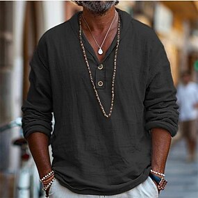 Per uomo Camicia Camicia con colletto a fascia Camicia estiva Camicia con bottoni Maglietta informale Nero Bianco Manica lunga Liscio A fascia Giornaliero Da mare Abbigliamento Cotone Misto cotone Di