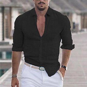 Per uomo Camicia Camicia Estiva Camicia casual Camicia da Spiaggia Camicia in cotone e lino Semplice Vacanza Camicia hawaiana Nero Bianco Rosa Blu Manica Lunga Bavero Primavera & Autunno Abbigliamento