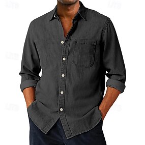 Per uomo Camicia Camicia in chambray Camicia in calicò Camicia con bottoni Maglietta informale Blu denim Nero Blu Blu scuro Manica lunga Liscio Colletto Giornaliero Da mare Abbigliamento Di tendenza
