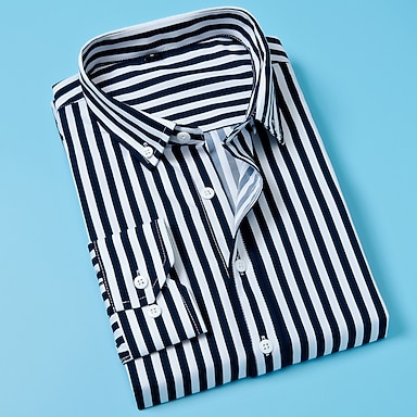 Per uomo Camicia elegante Camicia button-down Camicia a righe Camicia con Colletto A righe Matrimonio Lavoro Nero Bianco Rosso Blu marino Manica Lunga Colletto Abbigliamento