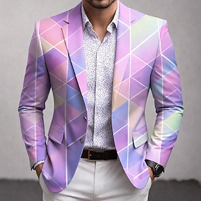 Per uomo Blazer Cappotto Casuale Casual Quotidiano Moderno Autunno / Inverno 100% Poliestere Blocco di colori Astratto Stampa 3D Bottoni Calore Termico Confortevole Monopetto Giacca Rosa