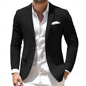 Per uomo Blazer Completi Affari Cocktail party Ricevimento di matrimonio Moda Casual Primavera Autunno Poliestere Tinta unica Tasca Bottoni Confortevole Monopetto Giacca Nero Bianco Grigio