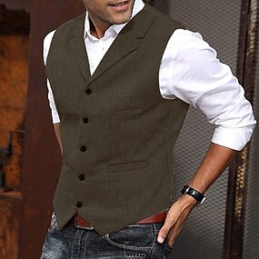 Per uomo Gilet Panciotto Da tutti i giorni Da mare Per uscire Retrò vintage Primavera & Autunno Pulsante Poliestere Comodo Liscio Monopetto A V Standard Nero Blu marino scuro Caffè Grigio Gilet