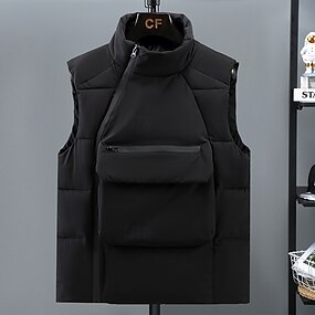 Per uomo Gilet imbottito Gilet Vacanza Quotidiano Data Moda Casual Autunno & Inverno Tasca Poliestere Caldo Confortevole Tinta unica Cerniera Collo alla coreana Vestibilità regolare Nero Vino Blu
