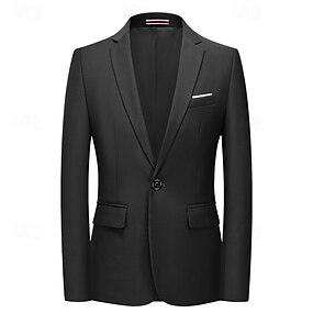 Per uomo Blazer Affari Cocktail party Ricevimento di matrimonio Moda Casual Primavera Autunno Poliestere Semplice Tasca Bottoni Confortevole Monopetto Giacca Nero Bianco Giallo Rosa