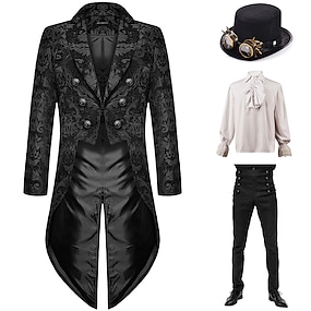 Vintage Punk & Gotico 18° Secolo Cappotto Costume Cosplay Smoking Ebenezer Scrooge Dickens Vampiro Elfo Gentiluomo Ricamato Costume Per uomo Reale Stile Steampunk Natale Halloween Carnevale
