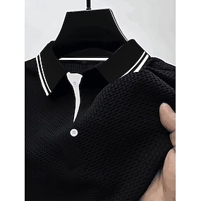 Per uomo Polo a maglia intrecciata Testurizzato Casuale Vacanza Bavero Manica Corta Moda Moderno Semplice Bottoni Traspirante Estate Primavera Nero Bianco Blu marino Cachi Grigio Azzurro Polo a