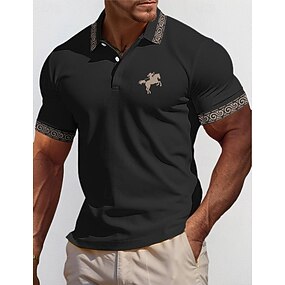 Per uomo Polo con bottoni Maglia da golf Casuale Sportivo Bavero Colletto Polo a Coste Manica Corta Moda Essenziale Blocco di colori Patchwork Ricamato Estate Vestibilità regolare Nero Bianco Giallo