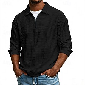 Per uomo Magliette Polo a Nido d'Ape Polo Abbigliamento quotidiano Data Zip a un quarto Manica Lunga Moda Essenziale Semplice Cerniera Primavera Autunno Vestibilità regolare Nero Blu reale Cachi