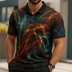 Per uomo Geometrico Polo Manica Corta Magliette polo Bavero Casual All'aperto Ferie Abbigliamento quotidiano Tasca Stampa 3D Primavera & Estate Blu Nero Viola