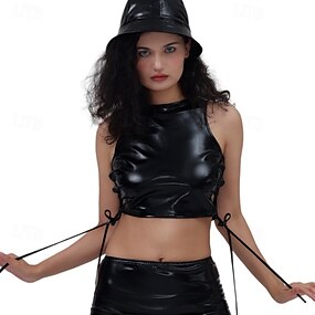 Metallico Anni '80 Lattice Lucido Crop Top Top all'americana Pelle PU Tinta unica Costume Per donna Costume di Carnevale Carnevale Mascherata Feste Parata dell'Orgoglio Mese dell'orgoglio Adulti Top