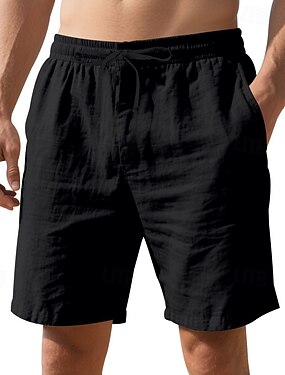pantaloncini da uomo pantaloncini di lino pantaloncini di cotone estivo pantaloncini da spiaggia pantaloncini casual tinta unita morbido esterno al ginocchio casual quotidiano hawaiano classico nero