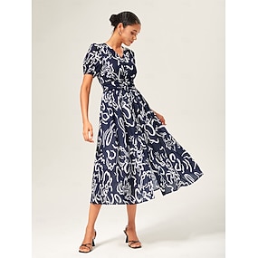 Per donna Abito Stampato Abito lungo maxi Nero Blu Arancione Manica Corta Floreale Stampa Floreale Estate Scollo a V Vacanza XS S M