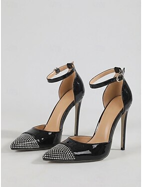 sandali neri da donna con tacco alto e punta a punta - tacchi a spillo con cinturino per cocktail party, eventi serali &vita notturna