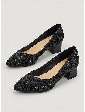 Décolleté da donna con tacco a blocco e decorazioni in cristallo, scarpe eleganti a punta chiusa per la madre della sposa, ideali per matrimoni in giardino. &eventi formali