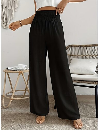 Per donna Nido d'ape Gamba larga Chinos Vacanza Lunghezza intera Vita Alta Comodità Micro-elastico Quotidiano Blu Verde translucido Aalbicocca Nero Primavera Vestibilità comoda