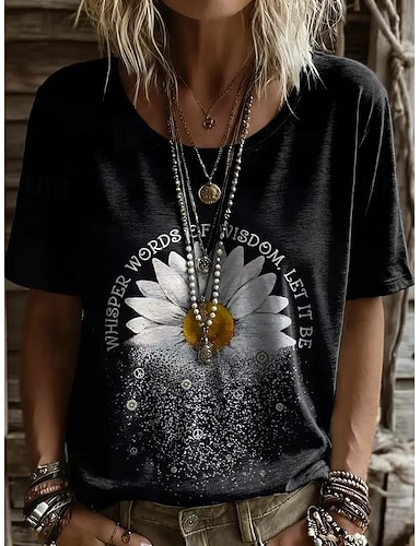 Per donna Maglietta Stampato Floreale Grafico Moda Elegante Classico Manica Corta Girocollo Top Regolari Casuale Quotidiano Weekend Blu Verde con beige Nero Bianco Giallo Estate Primavera