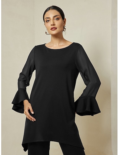 Per donna Top fluidi Top in chiffon Tinta unica Elegante Manica 3/4 Asimmetrico Top corti Ospite di nozze Nero Estate Primavera Autunno