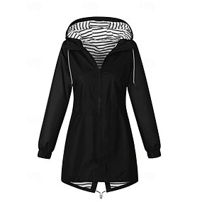 Per donna Trench Giacche antipioggia impermeabili Impermeabile Antivento Cerniera Tasca Moda All'aperto Semplice Uscire Weekend Cerniera Regolare Con Cappuccio Vestibilità regolare Manica Lunga