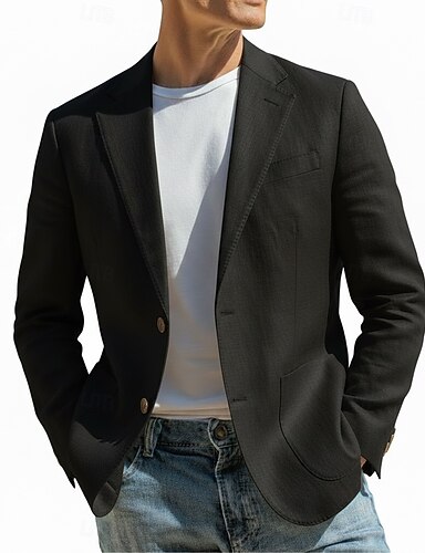 Per uomo Blazer di Lino Giacca Sportiva Colletto ad incastro Moda Casual Tinta unita Blazer in lino Nero Vestibilità standard Monopetto Un Bottone