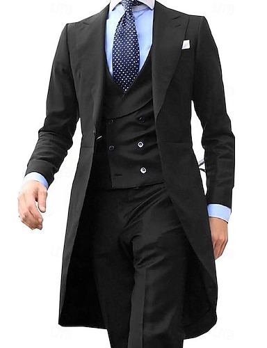 Uomo Smoking Abiti da festa Balli di fine anno Feste Nero Primavera, Autunno, Inverno, Estate Tuta Bavero a lancia Moda Lusso Tinta unita Vestibilità standard 3 pezzi Monopetto a un bottone