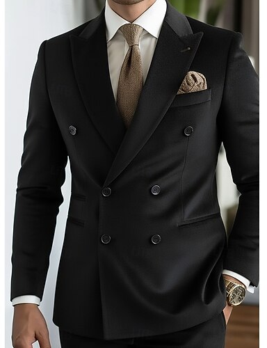 Uomo Abiti da lavoro Casuale Feste Nero Marrone Autunno & Inverno Tuta Bavero classico Formale Tinta unita Vestibilità su misura 2 pezzi Doppiopetto a sei bottoni