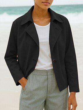 Per donna Giacca Casual Giacche strutturate Regolabile Tinta unica Casual / Quotidiano Elegante Vestibilità regolare Capispalla Manica Lunga Primavera Nero S