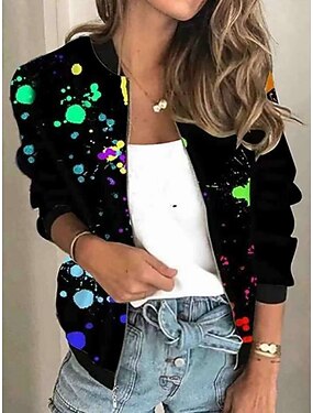 Per donna Giacca Casual Confortevole Traspirante Cerniera Stampato Casual Floreale Vacanza Streetwear Abbigliamento quotidiano Uscire Cerniera Regolare Collo alla coreana Vestibilità regolare Manica