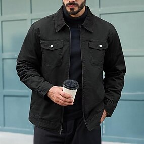 Per uomo Giacca Leggera Giacca da camionista Giacca da Lavoro Formale Casa Portatile Tasca Primavera Autunno Inverno Tinta unica Attivo Vintage Collo ripiegato Regolare Nero Verde Cachi Giacca