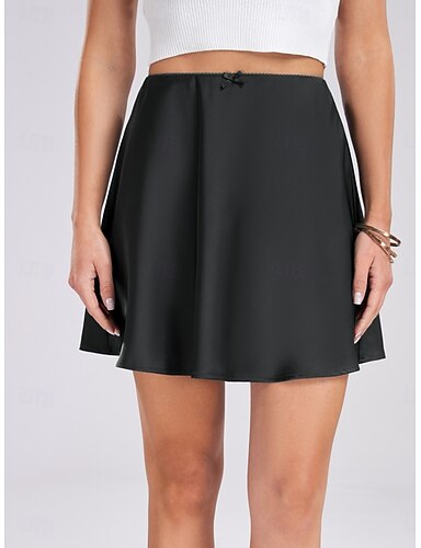 Per donna Gonne in raso Moda Casual Mini Vita Alta Gonne Semplice Inelastico Quotidiano Streetwear Nero Champagne Marrone Verde Estate Raso Poliestere
