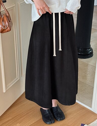 Per donna Casual Maxi Vita Alta Gonne Semplice Coulisse Inelastico Micro-elastico Quotidiano Streetwear Vinaccia blu navy Nero Bianco Primavera Velluto a coste Poliestere