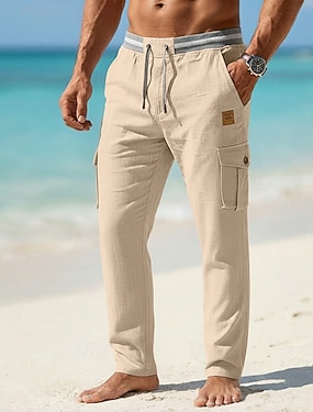 Per uomo Pantaloni Cargo Pantaloni di Lino Pantaloni Shorts Pantaloni Estivi Coulisse Elastico in vita Multi-tasche Semplice Comodità Traspirante Lunghezza intera Casuale Quotidiano Ferie Vacanza Moda
