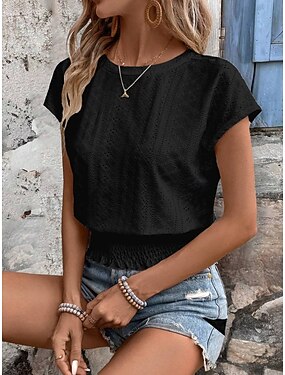 Per donna Maglietta Traforato Semplice Moda Elegante Classico Manica Corta Girocollo Top Regolari Quotidiano Uscire Weekend Nero Bianco Rosso Verde Estate Primavera