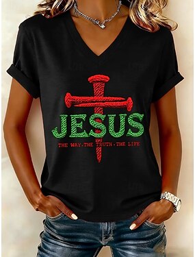 Per donna Maglietta Stampato Grafico Lettera Vintage Elegante Casual Manica Corta Scollo a V Top Regolari Quotidiano Nero Bianco Rosso Autunno Inverno