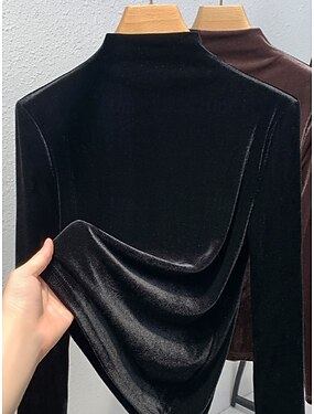 Blusa in velluto da donna Colore solido Elegante Stile base Manica lunga Collo alto Magliette regolari Quotidiano Arricciato nero vino viola marrone primavera autunno inverno