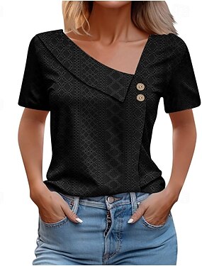 Per donna Maglietta Bottoni Semplice Moda Elegante Classico Manica Corta Girocollo Top Regolari Quotidiano Uscire Weekend Nero Bianco Caffè Estate Primavera