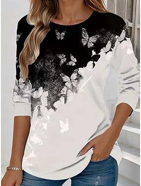 Per donna Maglietta Stampato Grafico Animale Farfalla Vintage Moda Elegante Manica Corta Manica Lunga Girocollo Top Regolari Quotidiano Weekend Nero Bianco Rosa Verde Cachi Estate Primavera Autunno