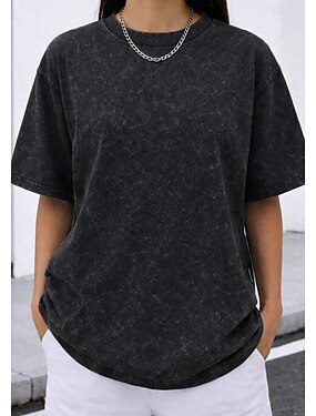 T-Shirt da donna in cotone 100% taglie forti oversized a tinta unita stilosa base casual a maniche corte girocollo collo rotondo tops regolari quotidiane per uscire SABBIA Nero Bianco Grigio scuro