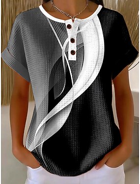Per donna Maglietta Cerniera Zip a un quarto Grafico Geometrico Blocco di colori Tropicale Hawaiano Elegante Manica Corta Girocollo Scollo a V Top Regolari Quotidiano Sportivo Uscire Bianco e nero