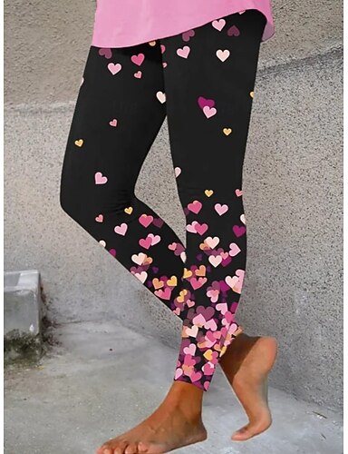 Per donna Leggings Vacanza Vintage Stile Etnico Lunghezza intera Vita AltaPantsSan Valentino Cuore Grafico Morbido Confortevole Elasticizzato Quotidiano Casa All'aperto Nero Bianco Estate Primavera