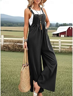 Rompers in lino sintetico da donna in cotone lino solidi senza maniche larghi da giorno spiaggia vestibilità ampia neri rosa verde militare estate