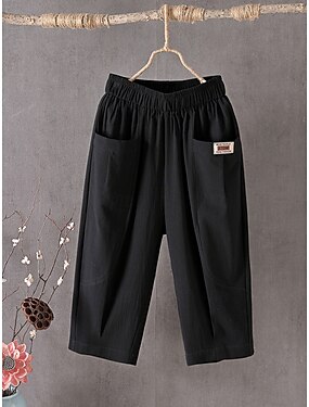 Per donna Finto cotone e lino Pantaloni Estivi Culotte Pantaloni Larghi Streetwear Semplice Casual Lunghezza alla caviglia Misura del girovita medio Semplice Tasca Elastico in vita Baggy Morbido