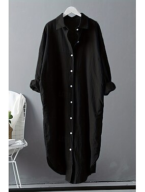 Per donna Abito lungo maxi Finto cotone e lino Abito a Tubino Abito Camicia Vestito Casual Casual Maturo Quotidiano Vacanza Abito Invernale Vestibilità comoda Colore Puro Manica Lunga Colletto a