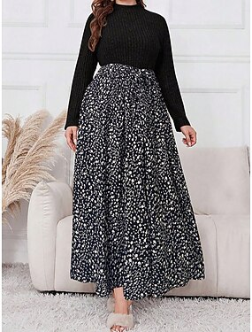 Per donna Abito maxi Vestito Casual Abito Stampato Elegante Moda Moderno All'aperto Vacanza Uscire Vestibilità regolare Grafico Manica Lunga Collo alla coreana Nero Cammello Estate Primavera Autunno