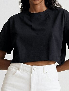 Per donna Blusa Finto cotone e lino Semplice Moderno Manica Corta Girocollo Top corti Ferie Uscire Blu Nero Verde Estate